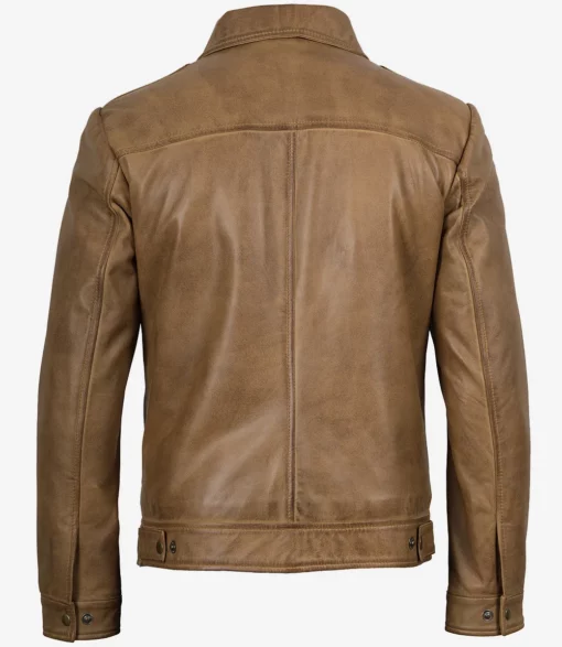 Mens Waxed Shirt Collar Harrington Leather Jacket